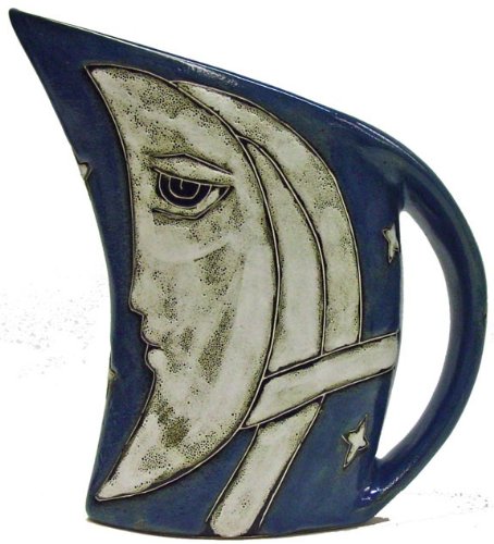 MARA STONEWARE COLLECTION - 32 Ounce Collectible Curved Water Pitcher Carafe Decanter - Celestial Moon Design